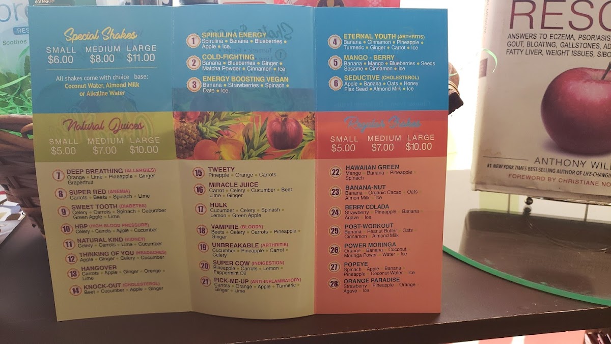 For an indulgent yet health-conscious treat, the Special Shakes are a must-try. Options like the Tropical Anti-Inflammatory, Cold-Fighting, and Energy Boosting shakes deliver not only delicious flavor but also immune-boosting and energizing benefits. The VeganBlueberry-Colada and Mango-Berry shakes are also available, providing a fruity, creamy option with the added benefit of plant-based ingredients.