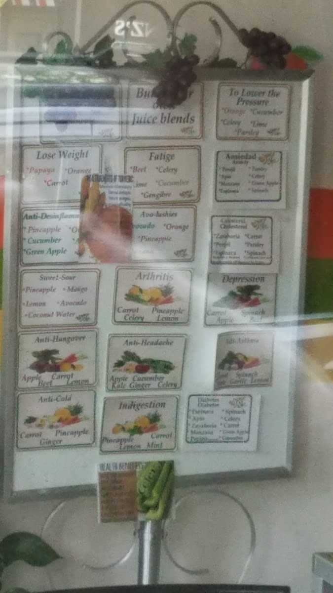 The Natural Juices section features options like Abc, Anti-Allergies, and Anti-Anemia, catering to specific health needs such as boosting immunity or addressing iron deficiencies. The High Blood Pressure and Kidney juices are specially designed for those looking to support cardiovascular and kidney health.